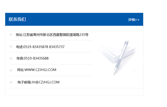 傳真:0519-83435688    郵編:213135    網址:WWW.czjhgj_com.66kanpian.com    電子郵箱:JH@czjhgj_com.66kanpian.com
